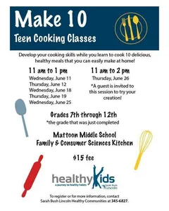 The Make 10 classes will be held at Mattoon Middle School in the Family and Consumer Sciences kitchen. There is a $15 fee for the class, however scholarships are available to those students on the free - or reduced - lunch program.