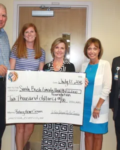 Pictured at the check presentation are: (left to right are) Andrew’s father Leon Gobczynski, sister Stephanie Uebinger, SBL Foundation Event Coordinator Kim Lockart, SBL Vice President of Development Kim Uphoff and SBL Vice President of Medical Affairs Dr. James Hildebrandt.