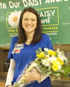 Fourth floor nurse Emily Harris, RN, was honored with the DAISY Award for Extraordinary Nurses at Sarah Bush Lincoln on Friday, October 14.