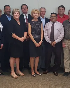 Pictured first row (left to right): Joyce Madigan, Jeanne Dau, Barbara Hoppin, Internist Kiran Joag, MD, Charles Kirchner, Ann Bacon and Linda Hance. Back row (left to right): Kim Hopkins, Bill Hill, Ph.D., Mike Stanfield, Radiologist Aldo Ruffalo, DO, Joe Dively, Medical Oncologist/Hematologist Ned Hoppin, MD, Mike Lanman, John Hedges, John Dye and Gary Philippi. Not pictured is Cleone Markwell, Jr. and Ophthalmologist Will Schubert, MD.
