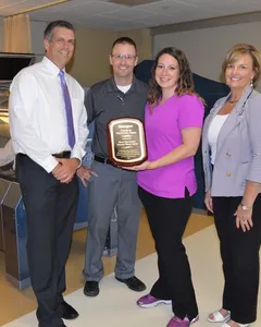 Deanna Eberts, Senior Vice President Healogics, (far right) presents the Center of Distinction Award to Advanced Wound Center staff members: (left to right) Greg Spillman, program director; Dr. Robert Biggs, Advanced Wound Center Medical Director; and Sara Cremeens, RN, clinical nurse manager.