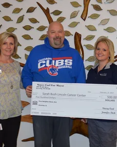 Stacey Carl of Greenup recently donated $500 to the Sarah Bush Lincoln Regional Cancer Center. Carl, who is currently running for mayor of Greenup, raised the funds by seeking donations from community members for yard signs supporting his political campaign. Carl has been battling stage IV colon cancer for more than a year, yet his mission is always to help others. “I feel very blessed in my life and I know there are people out there that need the money worse than I do,” he said. “I can’t say enough about how great the nurses and caregivers have been at Sarah Bush Lincoln”.