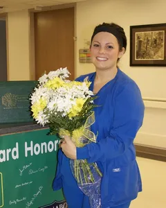 Sarah Bush Lincoln nurse Alexandra Barlas, RN, was honored with the DAISY Award for Extraordinary Nurses at Sarah Bush Lincoln on April 27.