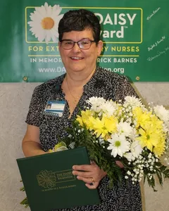 Clinical Education Director Cynthia Edwards, RN, was honored with the DAISY Champion Award at Sarah Bush Lincoln on August 2.
