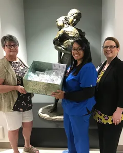Vickie Mendenhall of Neoga (left) donates angel wraps to comfort parents who experience the loss of a baby. She is pictured with labor and delivery nurse Shanti Goins, RN, (center) and Women and Children’s Director, Cindy Rivas, RN.