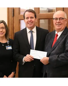 Pictured left to right is: SBL Health Foundation Director Amy Card, First-Mid President and CEO Joe Dively and Mobile Miracles committee member and Sarah Bush Lincoln Board Member Dr. Phil Kepp.